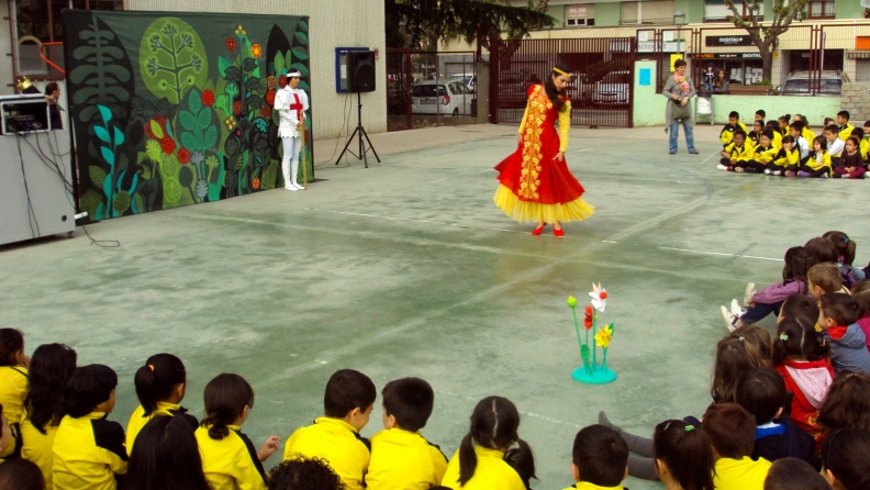 Els alumnes de les escoles Maria Montessori (a les fotos), Teresa Altet i Joan Maragall han pogut gaudir aquest dilluns als seus centres d'un espectacle sobre la llegenda de Sant Jordi, interpretat per la companyia D'Arrel Dansa.