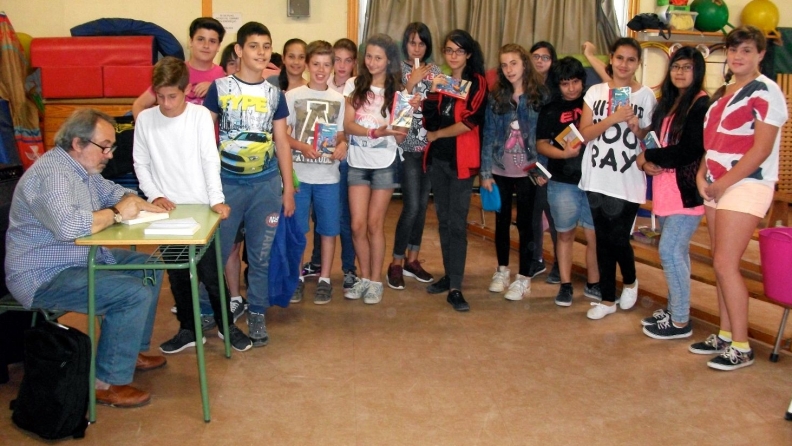 Els escriptors Jaume Cela i Antoni Dalmases visiten l'escola Pau Casals