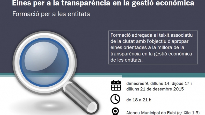 Durant el curs organitzat per l'Ateneu Municipal, es contextualitzarà el concepte de transparència en el sector no lucratiu i es donaran eines de caire econòmic que poden utilitzar les organitzacions per tal de millorar la seva gestió interna i transparència, posant l'accent en aquelles que puguin adaptar-se al dia a dia de les entitats participants.