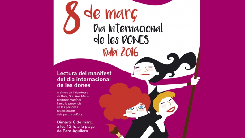 El dimarts 8 de març tindrà lloc la tradicional lectura del manifest institucional del Dia Internacional de les Dones a la plaça Pere Aguilera, amb la presència de l’alcaldessa, Ana María Martínez, i dels portaveus dels diferents grups municipals.