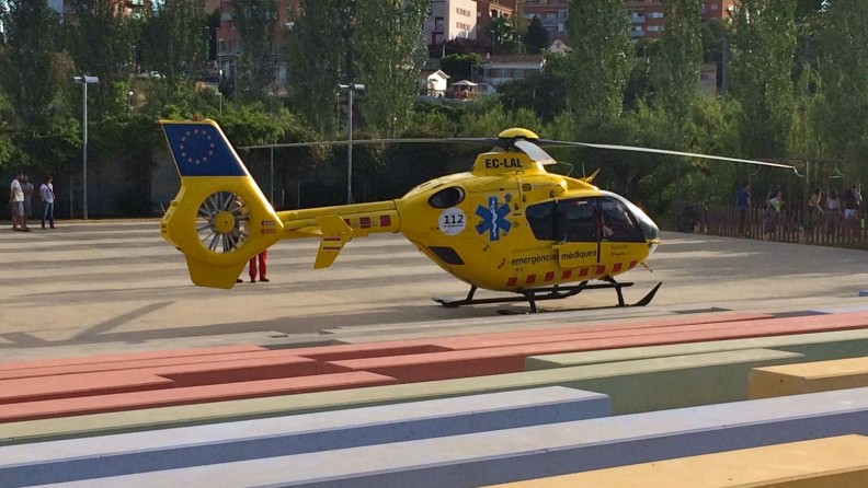 Un helicòpter aterra a l'amfiteatre del Castell per atendre una urgència mèdica