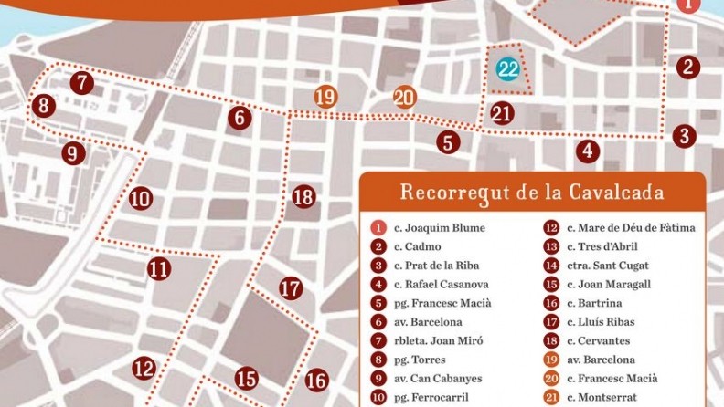 18.30h: Inici de la calvalcada des de l'Escardívol. Les carrosses seguiran aquest recorregut:
