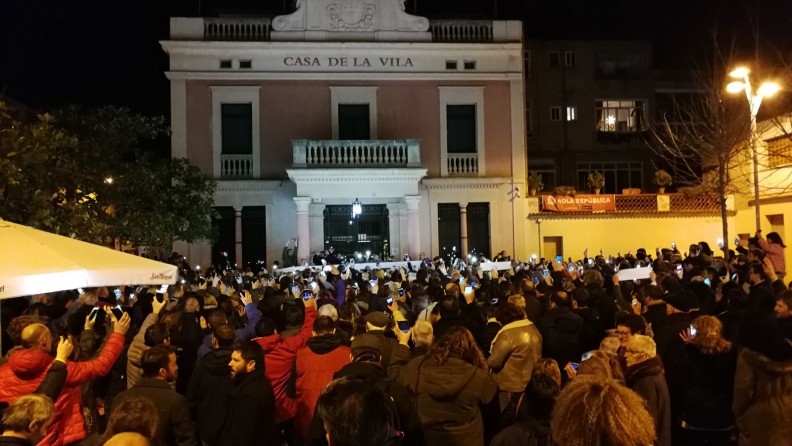 En saber-se la notícia Òmnium Cultural i ANC han convocat concentracions a tots els ajuntaments de Catalunya. A Rubí centenars de persones han omplert -pràcticament- la plaça per demanar la llibertat dels 'presos polítics'