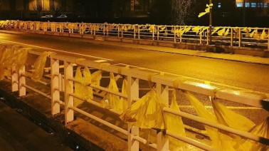 Un grup de rubinencs ha omplert de llaços grocs els ponts que travessen la Riera de Rubí a …